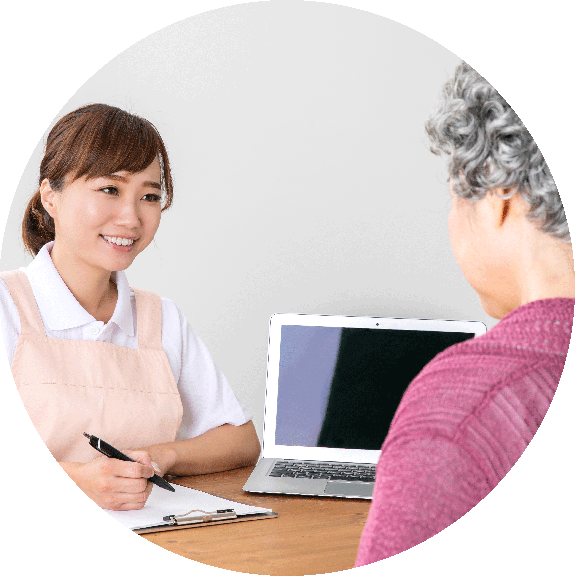 経験豊富なケアマネジャー(介護支援専門員)が、ご本人がどのようなサービスを必要としているのか把握、分析し、最適なケアプランを作成して、サービスを提供する事業所などとの連携、調整を行います。また、これから介護保険のサービスを受けようと考えているご本人や、その家族の相談を受け、ご本人や、家族の代わりに要介護認定の申請手続きも行います。 ※ケアプラン作成の費用は介護保険から出ており、お客様の負担はございません。